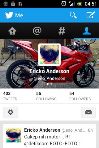 Ya, Sekedar sedikit promosi Twitter milik Ericko Anderson’s Blog, Saya minta sedikit kesediiannya buat para pengunjung sekalian untuk MenFollow Twitter Blog Ini, Cukup @eno_Anderson di Search, Follow, Mentions & I’ll Follow you Back…