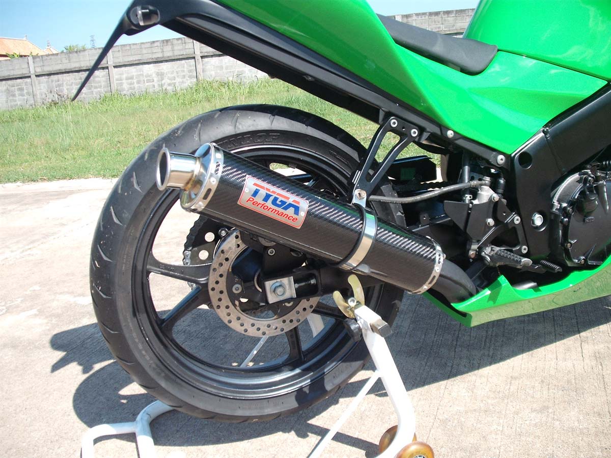 Yaapp, Penyedia part bodykit dan aksesoris bolt-on ternama asal negeri Paman Sam ” Tyga Performance ” membuat Part Bodykit dan aksesoris lainnya untuk motor yang berkategori sangat langka ini. Tampilan pun langsung berubah 180 derajat ( atau 360 derajat malah, :D). Fairing yang sebelumnya tampak kuno kini diganti dengan Fairing baru dengan Dual-Eyes Headlamp dan detail body yang mirip……. Mirip siapa hayooo ? Detailnya mirip Ninja EX250R keluaran 2007 keatas Brosist ! (Nah, Ganti tampang bisa sekalian ganti jaman juga), Bahkan yang ini bisa dibilang lebih keren karena sudah aplikasi Dual-Eyes Headlamp & Framenya yang jauh lebih Kekar.