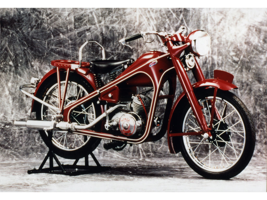Motor pertama buatan Soichiro Honda terkenal dengan Nama A-Type dan selanjutnya Dikenal dengan nama Chimney, Dibuat pada November 1947. . . Kalau dilihat-lihat sih bentuknya lebih mirip sepeda dibanding motor 😛 , Output power nya sanggup mencapai 0,5 HP. . . Motor ini mendulang sukses yang terbilang cukup besar, Karena memang saat itu Honda belum mempunyai Pabrik. . .