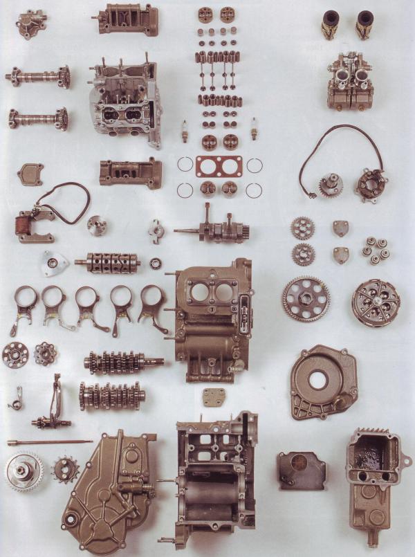Wah motor gendeng nih, 50 cc, 2 silinder, 8 klep, power 16 hp, rahasianya apaan tuh ya, kok bisa bikin part yg begitu kecil dengan presisi.