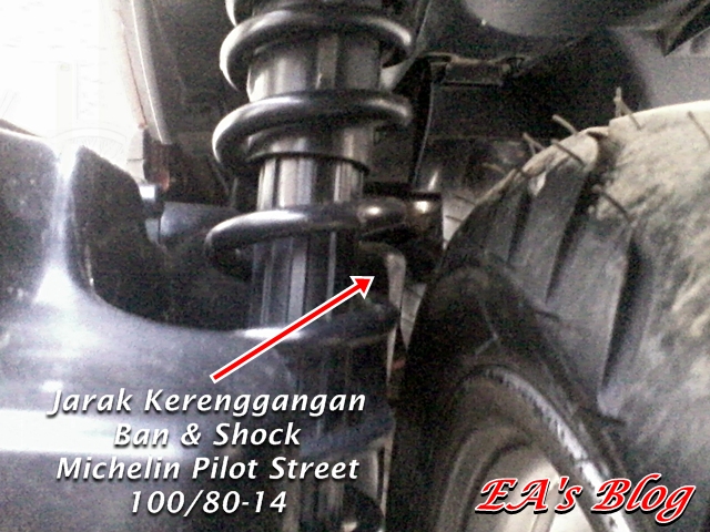 Sebenarnya sih Menggunakan Michelin Pilot Street Hingga Ukuran Lebar 120 di Spacy pun tak masalah Brosist. . . Masih jauh dari shockbreaker nya Koq (Silahkan lihat Pic jarak Shockbreaker ke Ban diatas) !! EA juga sempat ngobrol dan bertanya-tanya sama mekanik nya Planet Ban, Pemasangan hingga ukuran 110 atau 120 memang masih dianjurkan untuk Skutik berbody Semok ini. . .