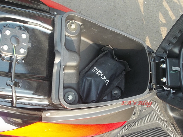 Menariknya, TVS Dazz ini memiliki Tangki BBM berukuran 5,3 Liter loh Brosist, Alias lebih besar ketimbang Spacy Helm-In milik EA’s Blog. . . Yang anehnya lagi, Bodynya masih tetep ramping singset tuh Brosist !! Coba bedain sama Spacy yang meleber kemana-mana –_– . . . Loh, Terus Bagasinya Gimana kang Eno ? Tenang, Masih ada koq Brosist. . . Masih bisa buat nyimpen jas hujan & toolkit tuh. . . 😀