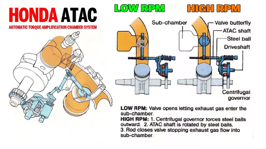 Sistem kerja ATAC ini beda dari YPVS atau AETC di kompetitornya. Soalnya ATAC ini pakai chamber terpisah buat mengontrol efek gelombang balik ke port exhaust. Tipe chamber terpisah kayak di NS400R begini bisa dibilang lebih presisis secara mekanisme dibanding RG Gamma atau RD500.