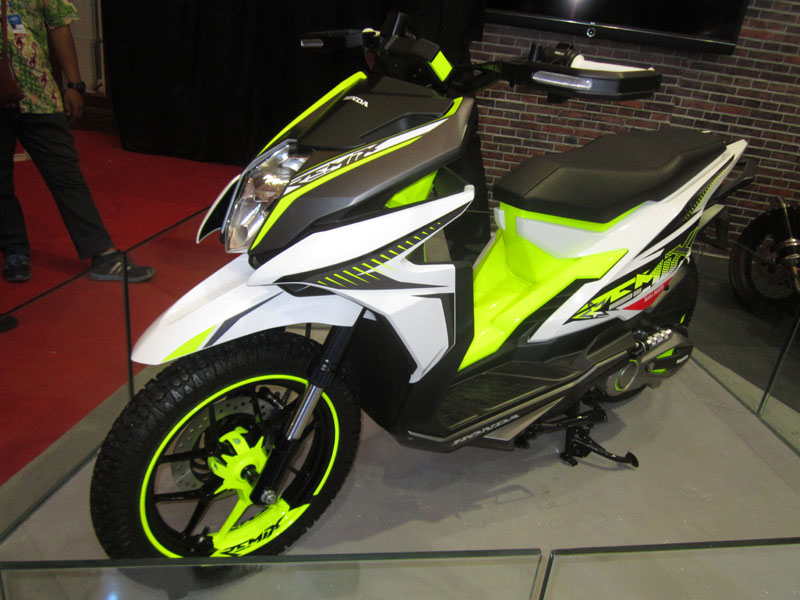 Brosist sekalian, Kehadiran Honda Zoomer X memang sudah sangat lama dinantikan untuk bisa diproduksi di Indonesia. . . Sayangnya, Hingga saat ini kabar tersebut hanyalah sebatas khayalan belaka, Lantaran Pihak AHM terkesan “ragu” untuk menghadirkan skutik ini. . . Kemudian, Secercah harapan kini mulai hadir, Saat di ajang IMOS 2014 kemarin Honda memperkenalkan Remix Concept, Sebuah prototype Skutik berdesain nyentrik yang tak kalah menarik dibanding sang Skutik Thailand. . .