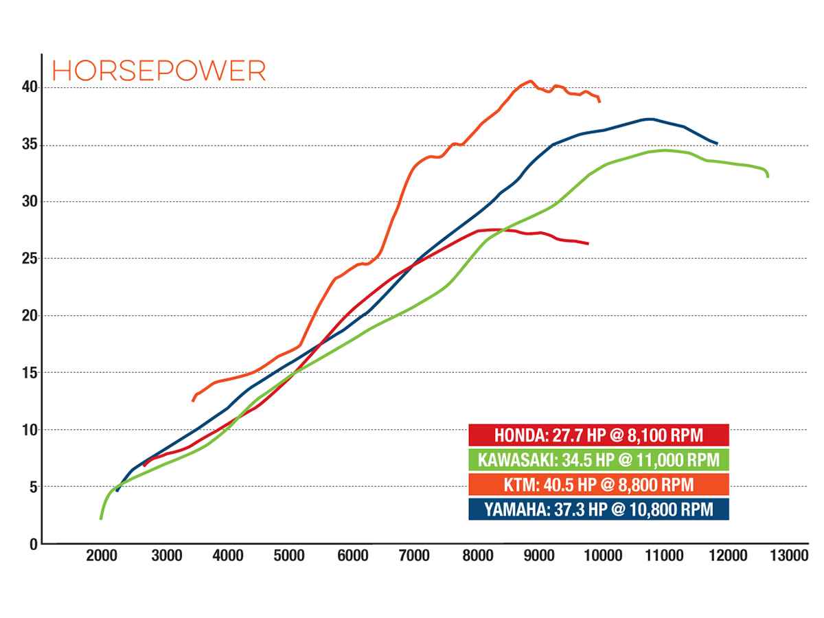 CBR300R vs YZF R25 vs Ninja 300 vs KTM RC390 Dynotest