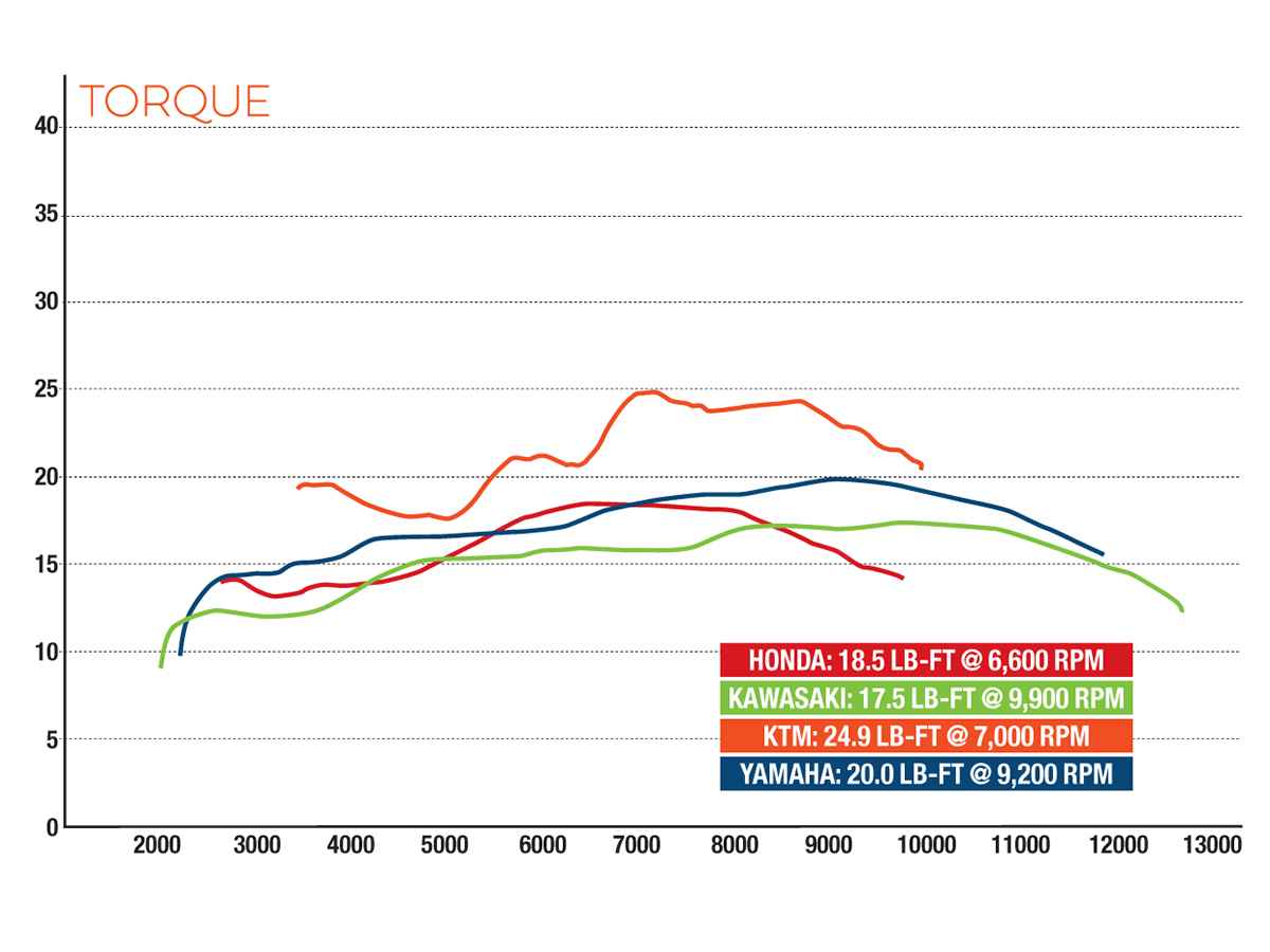 KTM RC390 vs CBR300R vs YZF R25 vs Ninja 300 Dynotest