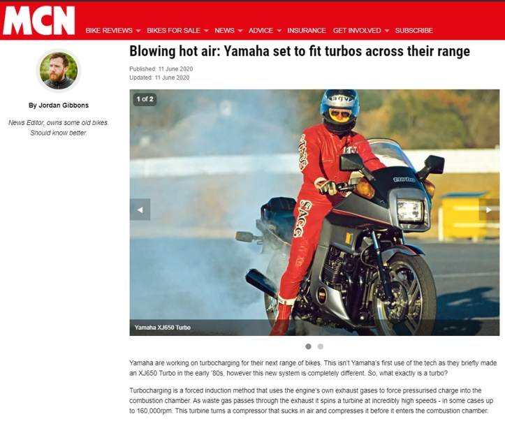 Diberitakan situs motor kenamaan MotorcycleNews, Yamaha dirumorkan terus melakukan development turbocharger untuk moge mereka di versi terbaru nanti. Menurut MCN, Yamaha bakal menggunakan konstruksi turbocharger yang ditempatkan dekat exhaust header, persis seperti yang kalian lihat di motor-motor yang dicustom pakai turbo.