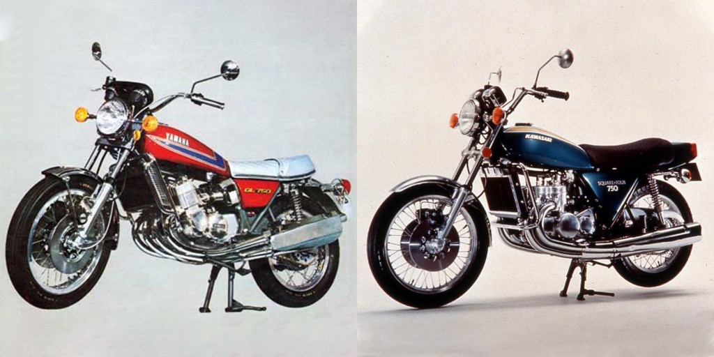 Dan gokilnya, penerus big bike 2-Tak ini bukan cuma sudah pakai teknologi terbaru yang bikin duet monster 2-Tak sebelumnya kelihatan kayak dinosaurus, tapi secara teknikal – juga jauh lebih bikin ngiler lagi. Namanya adalah Yamaha GL750 sama Kawasaki Square Four 750.