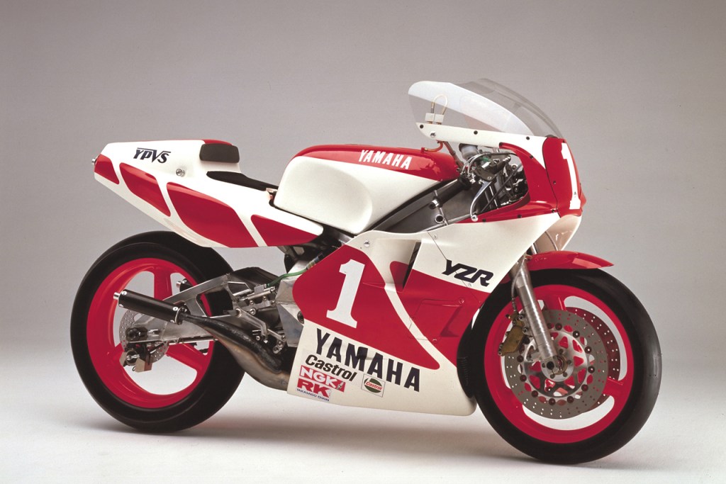 Livery putih strip chain block merah ini kemudian debut perdana dibalapan GP500 pada musim 1978 lewat YZR500 tunggangan Johny Cecotto. Memasuki era 80-90’an – thanks untuk kemajuan desain grafik – livery ini terus mendapat penyempurnaan dari sisi grafis… Mulai dari penambahan strip hitam, chain blok yang desainnya lebih gede, sampai yang kombinasi antara chain block sama strip merah juga ada.