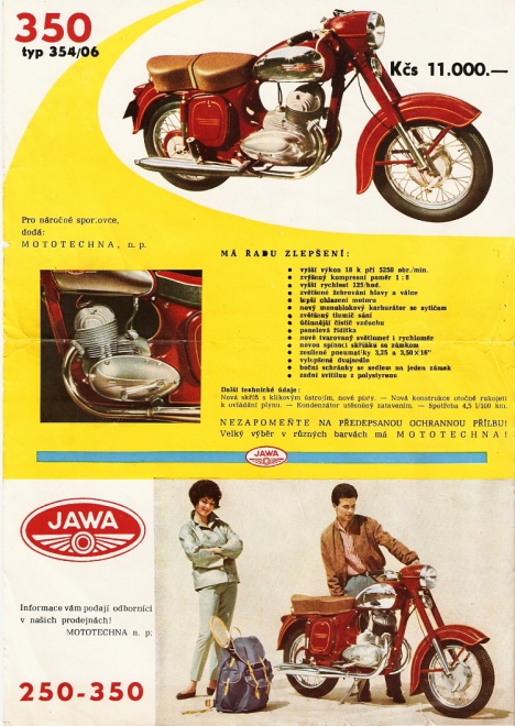 Masuk ke list pabrikan Blok Timur yang dibanggakan kubu Soviet, merk JAWA kemudian terkenal lewat produk 250 dan 350-series nya yang laris-manis dipasaran. Contohnya kayak Jawa 250, 350 Perak, Jawa Typ 354, Typ 554, sampai Typ 634 yang unik karena mesinnya 2-Tak twin cylinder tapi pakai ignition timing yang mirip pembakaran 270° di mesin 4-Tak.