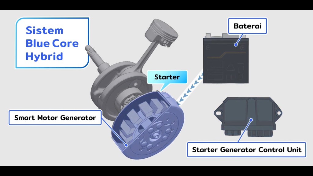 Dan begitu kalian nyelow terus buka throttle lagi, sistem Hybrid ini kerja lagi deh kasih boost ke SMG Starter selama 3 detik. Dan begitu aja terus diulang-ulang.