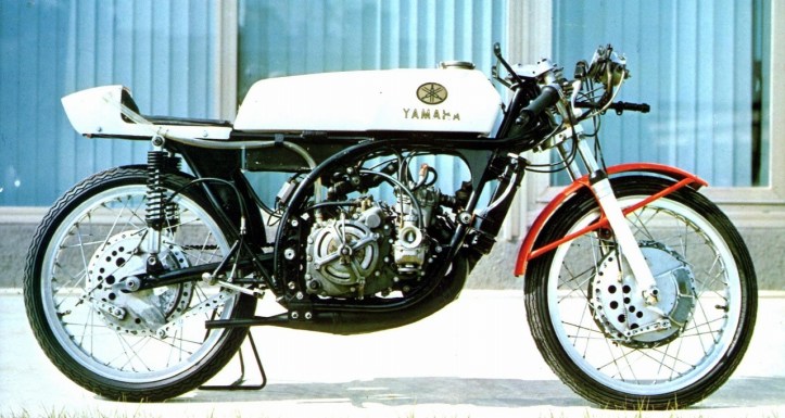 Yap, kalau ngomongin motor 2-Tak V4 di era 60-an, kita pastinya nggak bisa begitu saja melupakan Yamaha. Kenapa Yamaha? Soalnya ya cuma mereka yang beneran rajin tuning tipe mesin ini sampai limit tertinggi. Keuletan Yamaha bahkan terbayar dengan titel juara dunia dikelas GP125 sama GP250.