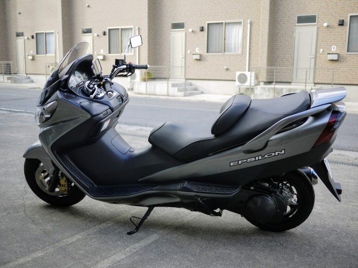 Selain Epsilon 150, Kawasaki juga masih punya Epsilon 250. Matic ini adalah copy-an Burgman 250 generasi awal yang direbranding ulang oleh geng-ijo. Buat kalian yang seneng anime, pastinya sudah nggak asing lagi deh sama matic ini. Soalnya pernah jadi salah satu tunggangannya Raimu-senpai juga di anime Bakuon.