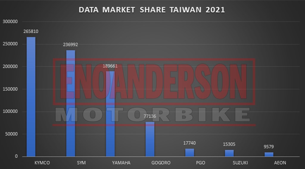 Berdasarkan data tahun 2021 kemarin, Kymco masih memegang tahta sebagai brand terlaris di Taiwan. Dengan total sekitar 265 ribuan unit motor yang terjual atau memegang sekitar 32% market share.