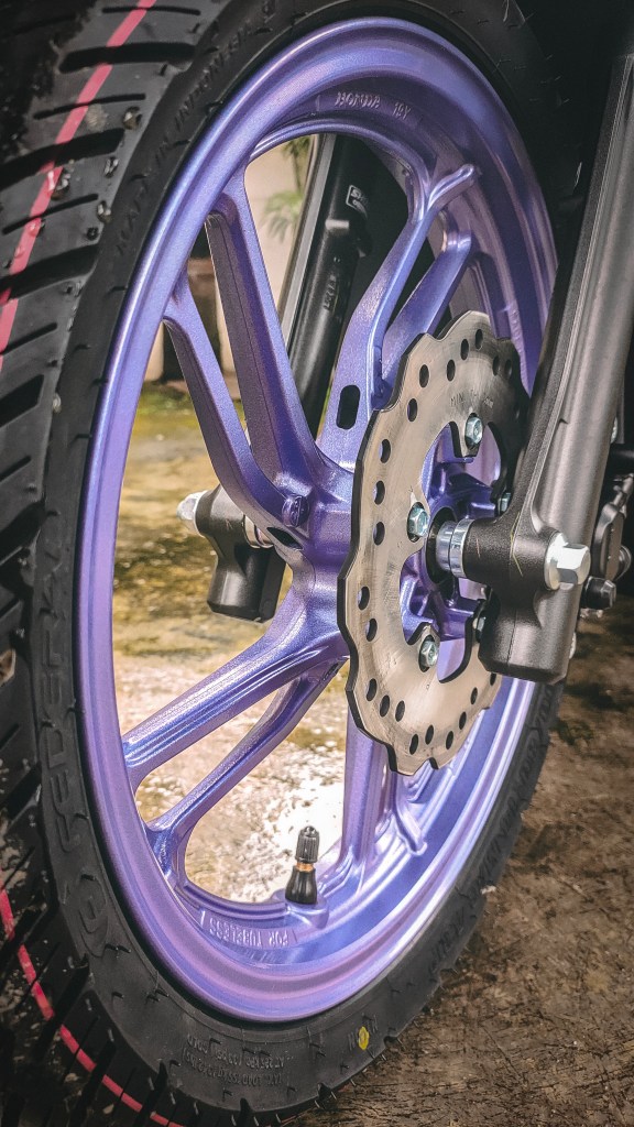 Sayangnya, unit yang ready stock waktu itu adalah warna hitam velg putih yang terkesan “meh” banget. Dan karena saya lihat warna Black-Purple sangat unik, plus baru pertama kali ada di matic Honda (sebelumnya pernah ada, tapi warna Violet Black), saya langsung merekomendasikan warna satu ini meski harus inden terlebih dulu.